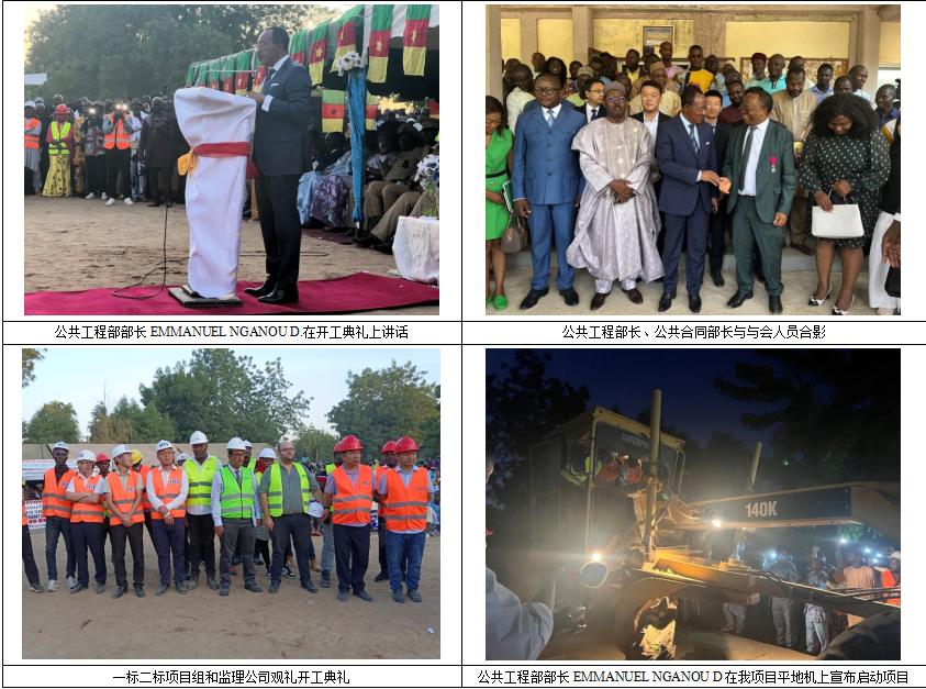 喀麥隆公共工程部部長EMMANUEL NGANOU D、喀麥隆公共合同部部長TALBA MALLA IBRAHIM,在極北大區(qū)MAYO-DANAY省省長JEAN - LAZARE NDONGO NDONGO等當(dāng)?shù)卣賳T陪同下,共同出席了本次開工典禮儀式。突尼斯監(jiān)理公司STUDI INTERNATIONAL,一標(biāo)中地海外喀麥隆分公司代表和中揚項目組、二標(biāo)新疆交建項目組受邀出席開工典禮。